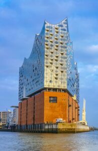 L’edificio, visto dal fiume, sembra avere la forma di una nave, rendendo così omaggio alla città portuale nella quale si trova. I pannelli brillanti assomigliano alle squame di un pesce e ricordano le influenze delle forme organiche presenti in molte opere di Gehry. Visto dall’alto l’architettura mostra senza ombra di dubbio la forma di un fiore.