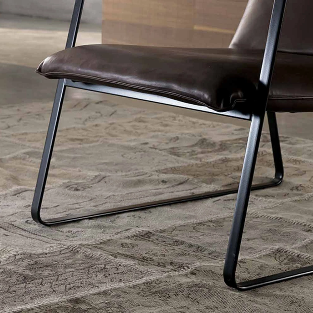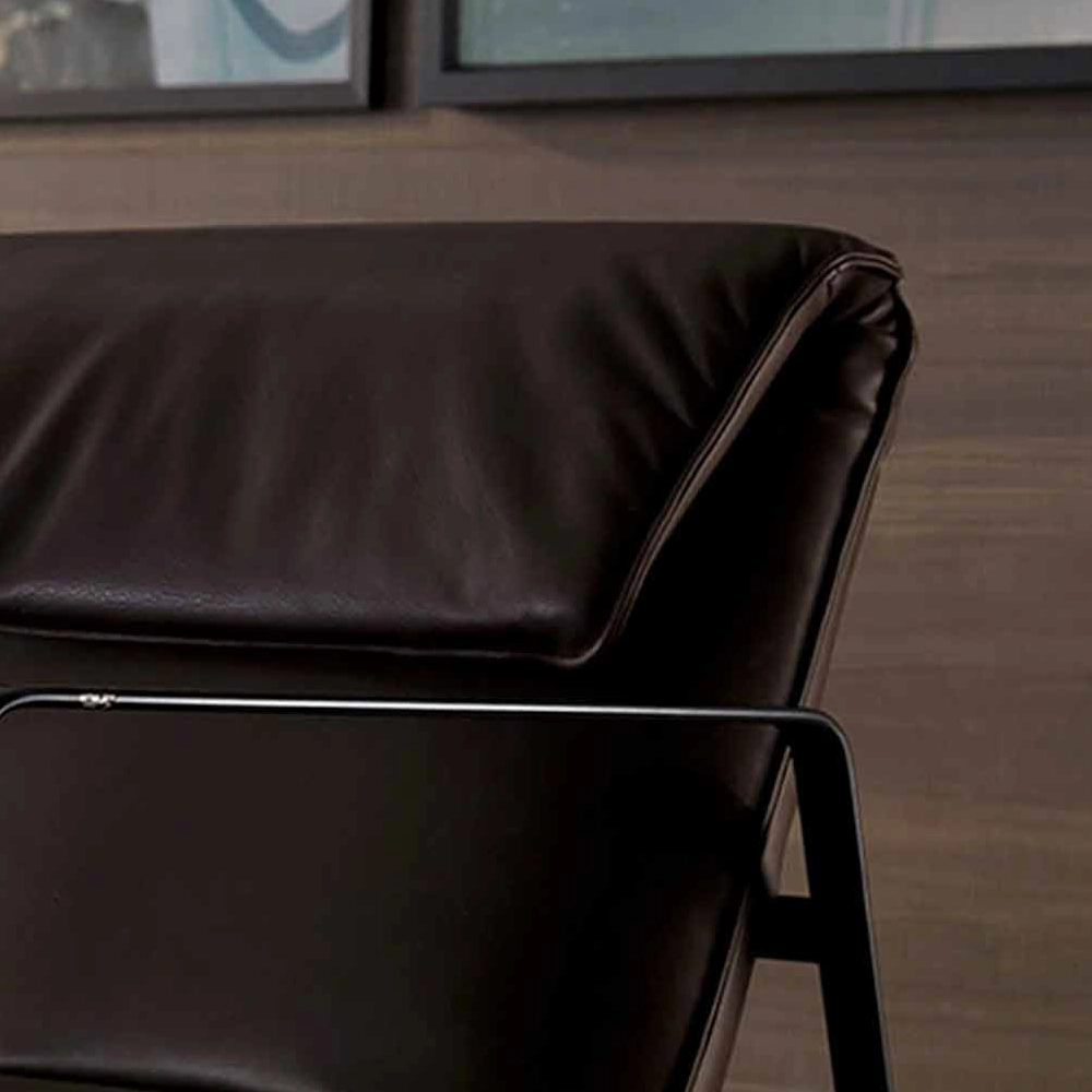 The Eastway armchair features light lines with a minimalist and modern concept that showcases a contrast in shapes and materials.