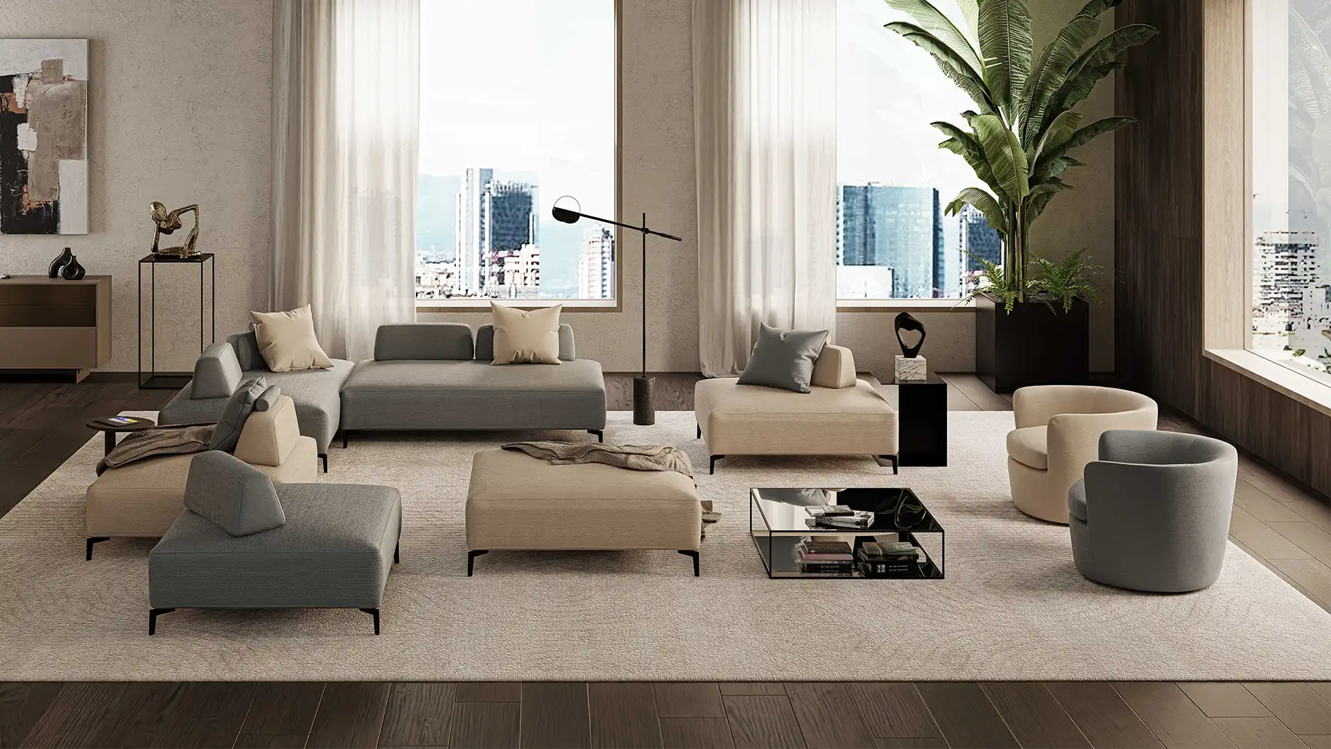It is a versatile sofa with shapes that lend themselves to a variety of layouts, available in both classic linear and curved solutions.